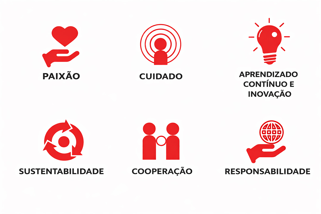 Alta capacitação técnica; comprometimento; pontualidade; adaptabilidade às necessidades do nosso cliente; relacionamento; ética, respeito ao meio ambiente.